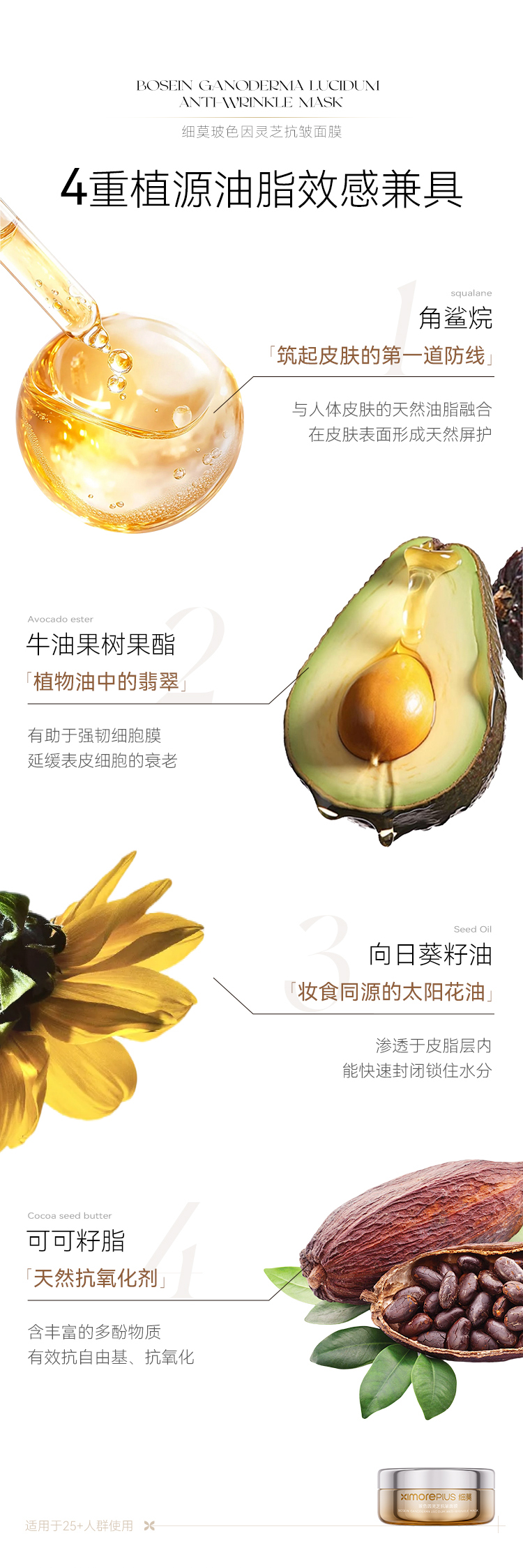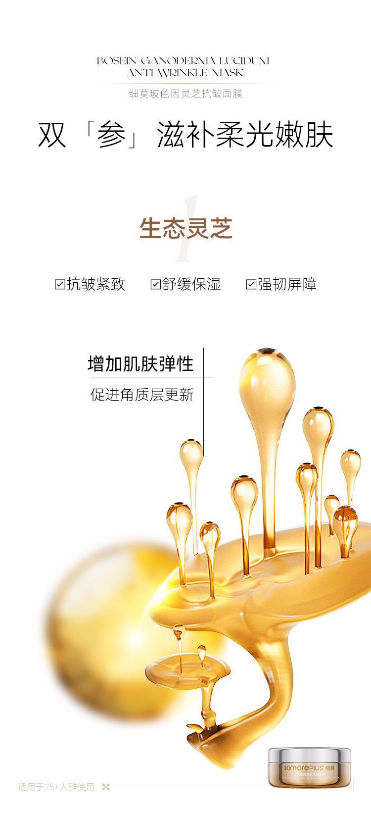 成分:水、甘油、聚二甲基硅氧烷、牛油果树(BUTYROSPERMUM PARKII)果脂、丁二醇、鲸蜡硬脂醇、辛酸/癸酸甘油三酯、1,2-己二醇、甘油硬脂酸酯、PEG-100 硬脂酸酯、角鲨烷、向日葵(HELIANTHUS ANNUUS)籽油、淀粉辛烯基琥珀酸铝、甲基葡糖醇聚醚-20、环五聚二甲基硅氧烷、鲸蜡硬脂醇橄榄油酸酯、氢化棕榈仁油、合成氟金云母、山梨坦橄榄油酸酯、羟丙基四氢吡喃三醇、鲸蜡硬脂基聚二甲基硅氧烷交联聚合物、生育酚乙酸酯、对羟基苯乙酮、CI 77891、可可(THEOBROMA CACAO)籽脂、丙烯酸(酯)类/C10-30 烷醇丙烯酸酯交联聚合物、尿囊素、精氨酸、赤芝(GANODERMA LUCIDUM)提取物 其他微量成分:人参(PANAX GINSENG)根提取物、水解透明质酸钠、芍药(PAEONIA ALBIFLORA)根提取物、水解人参皂草苷类、乙酰化透明质酸钠、透明质酸钠、北玄参(SCROPHULARIA BUERGERIANA)提取物、透明质酸钠交联聚合物、乙酰基六肽-8、二肽二氨基丁酰苄基酰胺二乙酸盐、乙酰基六肽-7、六肽-9、乙酰基四肽-2、棕榈酰三肽-1、棕榈酰四肽-7、精氨酸/赖氨酸多肽、硅酸铝镁、单子山楂(CRATAEGUS MONOGYNA)果提取物、黄花蒿(ARTEMISIA ANNUA)提取物、植物甾醇类、聚山梨醇酯-20、乙基己基甘油、双丙甘醇、聚二甲基硅氧烷/乙烯基聚二甲基硅氧烷交联聚合物、黄原胶、氧化锡、1,2-戊二醇