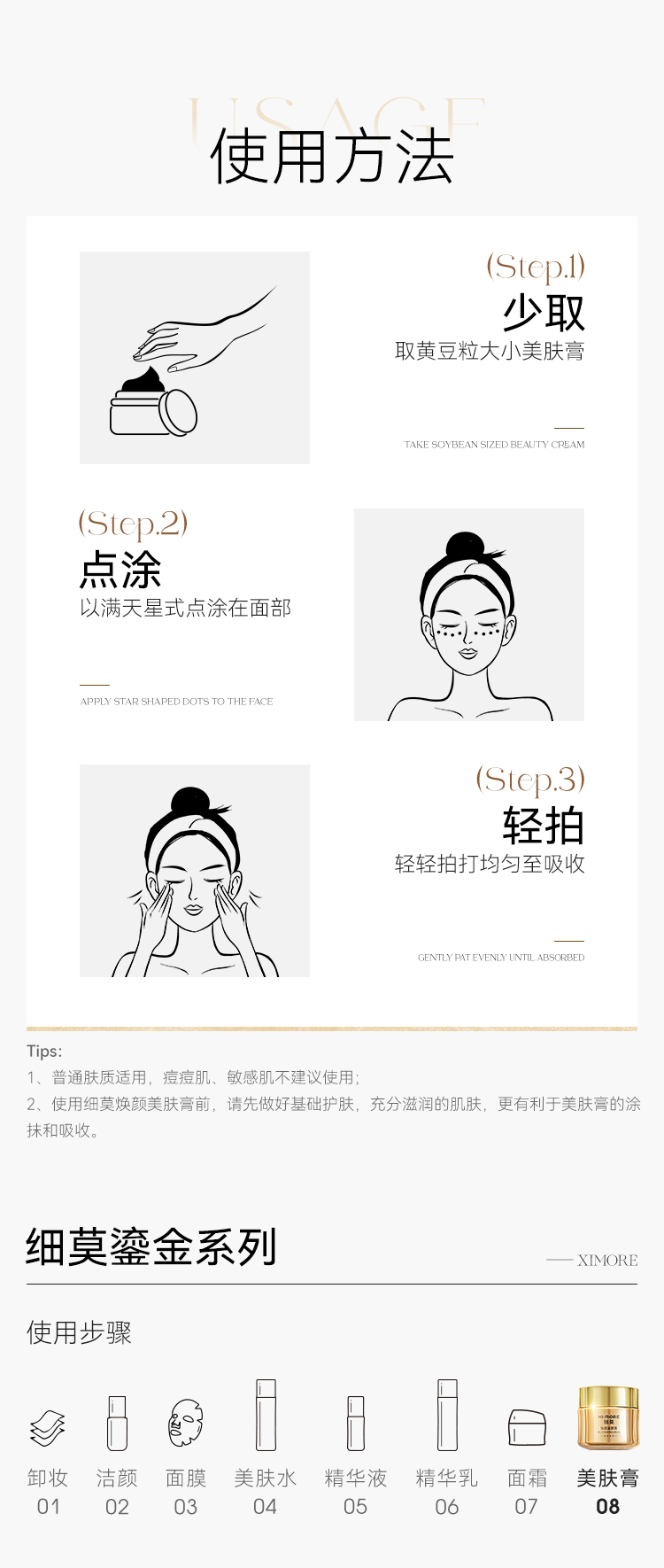 50g/瓶+赠粉扑1个 使用方法:取黄豆粒大小,将膏体满天星点涂在面部,轻轻拍打均匀至吸收;不建议直接涂抹揉搓,以免影响使用体验。